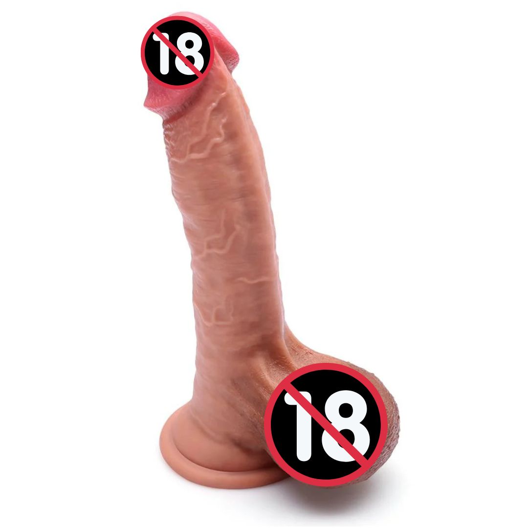 Realistic 8.3 inch Double Layer Silicone Massager with Suction Base – Skin Tone